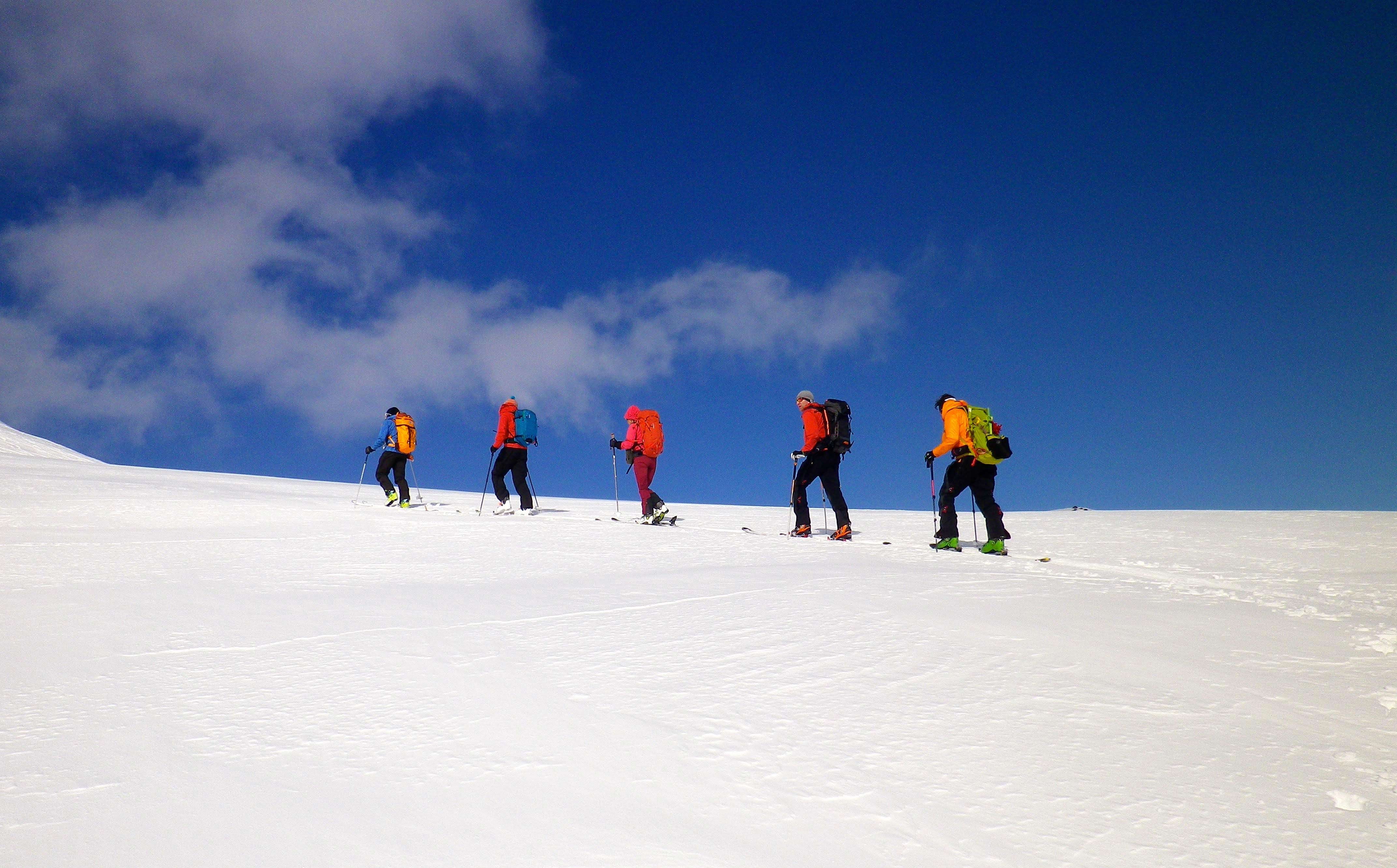 A discipline that has been in full development for the past fifteen years, ski touring is for many the most beautiful way to explore the snow-covered virgin mountains. It is the joy of immersing yourself in the wild mountains, climbing and descending passes and summits on skis away from the ski areas during a day accompanied by a high mountain guide. With his companions, the cross-country skier shares the observation and analysis of the terrain, the choice of route, the effort and the pleasure of reaching a summit by himself. After drawing on your physical resources, the feeling of having deserved your descent in virgin snow is strong and often becomes addictive. Whether you are a beginner or experienced, the country of La Meije is a privileged place for ski touring and abounds in opportunities. From the initiation on the heights of Chazelet to the Grand Tour of La Meije by its glaciers, our guides will know how to make you experience this activity with maximum serenity.